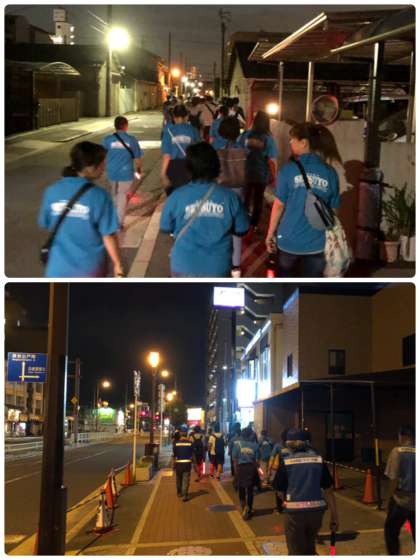 杭全神社平野郷夏まつりは、子どもたちも例年楽しみにしているところですが、他地域からも多くの人が訪れ、中には良からぬことを考える人がいないとも言えません。子どもたちの安全を見守るために、PTA、地域、関係機関にご協力いただき、今年度も夜間巡視を行なっています。