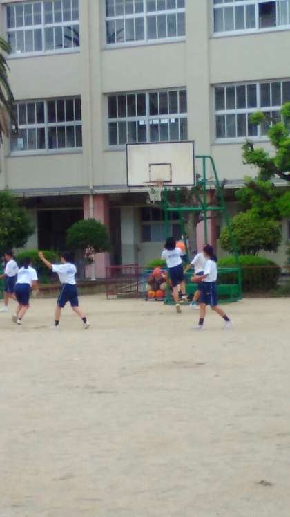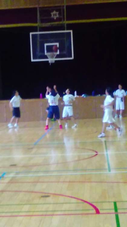 女子バスケット部の活動の様子です。大きな声を出して練習に励んでいます。