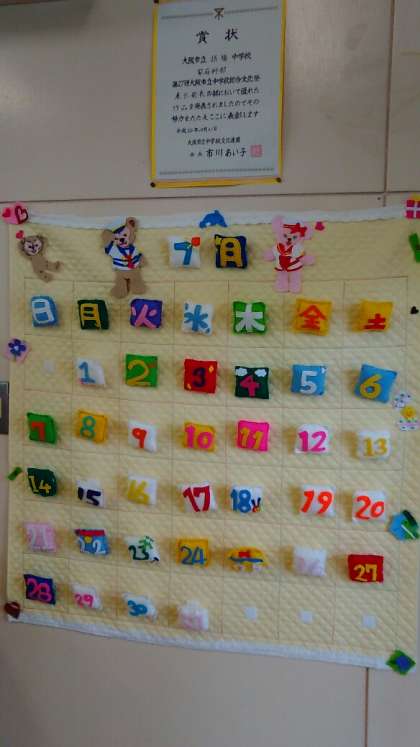 家庭科部の作品です。干支のタペストリーを作っています。2枚目の写真は去年の作品です。