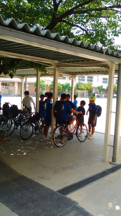ハンドボール部は、長居公園の体育館で練習試合です。学校に集合して出発するところです。