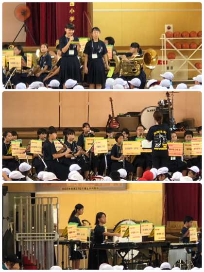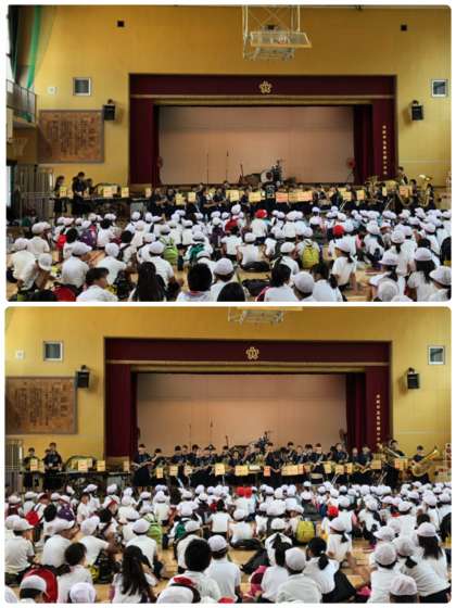 本日、吹奏楽部は喜連西小学校校内キャンプのオープニング演奏に出向きました。
