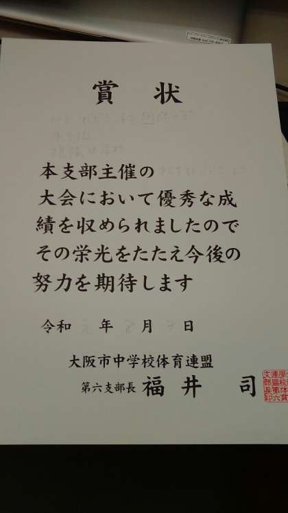 先日行われたバドミントン第6ブロック大会団体戦で3位になりました。賞状を清書して、2学期に披露します。おめでとうございます。