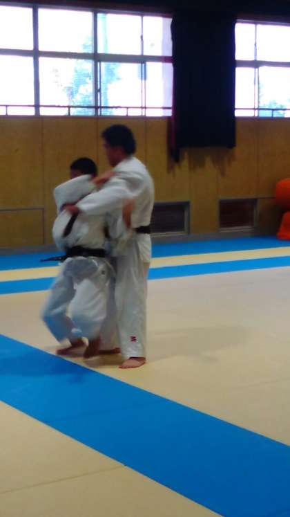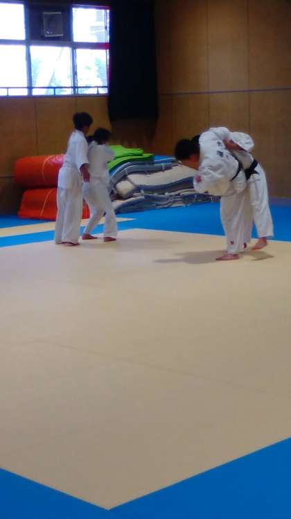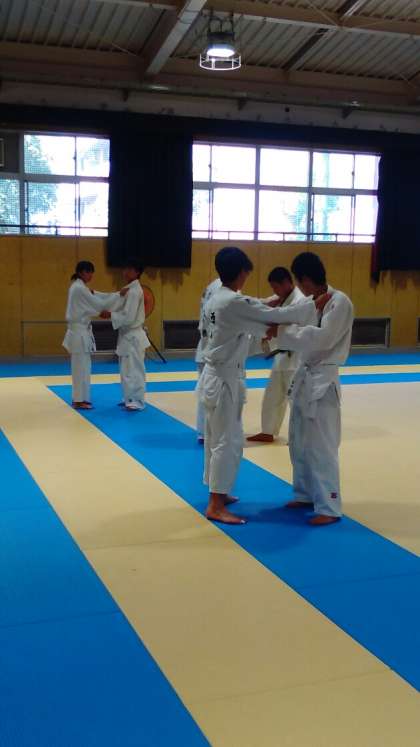 学校外での活動が多い柔道部。今日は暑さの中、格技室で練習しています。