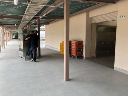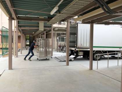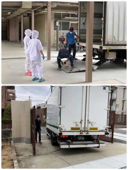 子校となる長吉西中学校へ出来上がった給食が配送されます。