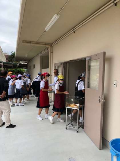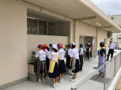 その後、各学年の動線で給食室に向かいました。