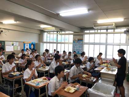 学校調理方式による給食、歴史的瞬間の「いただきます!」です。