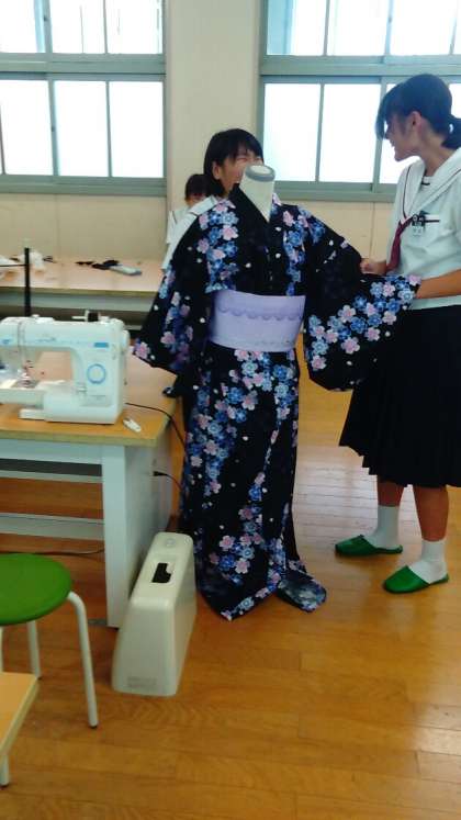 家庭科部の活動です。こちらも文化発表会に向けて作品を制作しています。