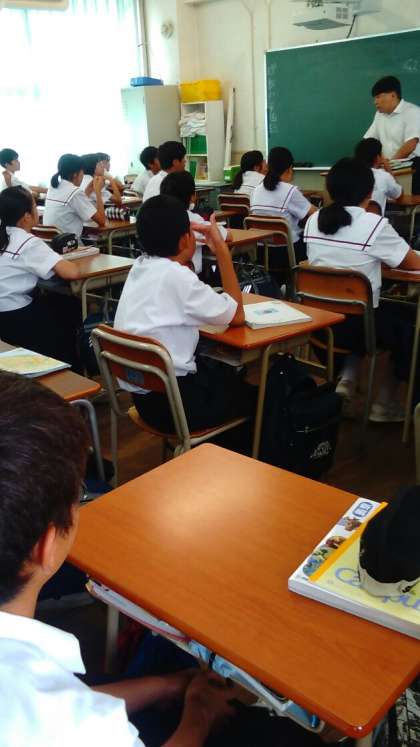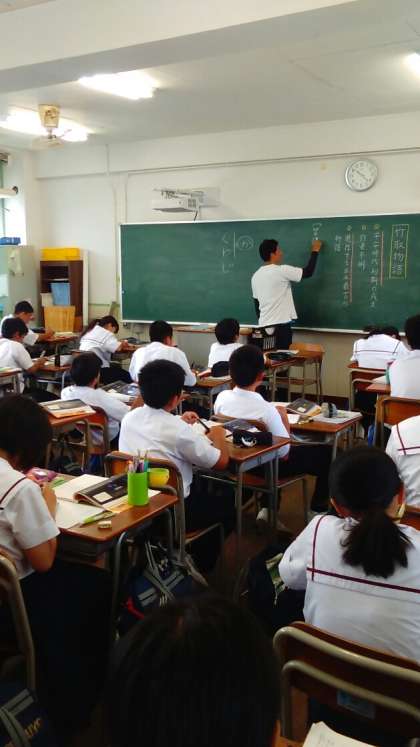 1年4組の国語、1年1組の社会の時間です。