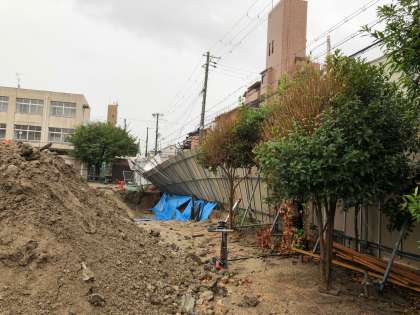 本校でも給食調理室の工事のために設置されていた柵が倒れる、防球ネットが破れる、校舎の窓ガラスが割れるなどの被害がありました。(現在は全て復旧しています。)