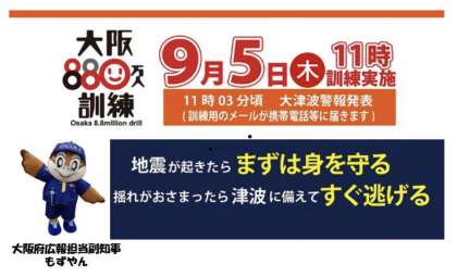 明日は大阪880万人訓練が実施されますが、災害への備えをしっかりしておきたいところです。