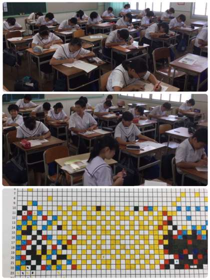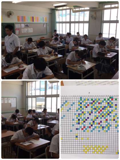 2年生は6時間目、モザイクアートに取り組みました。作業が進んだ人もいますが、塗り切るまでにはもう少しかかりそうです。