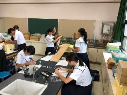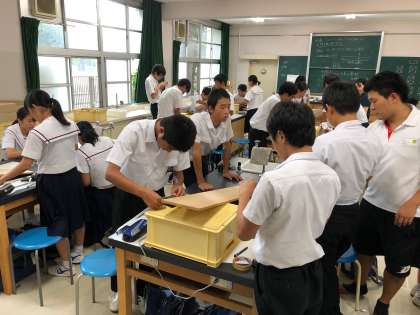 3組は理科室で台車を使って実験を行いました。
