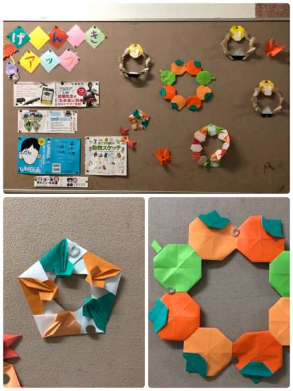 学校元気アップ地域コーディネーターの方が、北館1階の掲示板を秋バージョンに飾ってくれました。