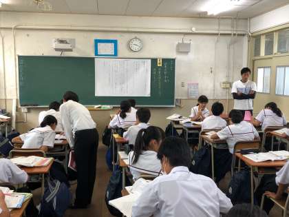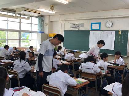 1年1組の国語の様子です。教育実習生が授業をしています。