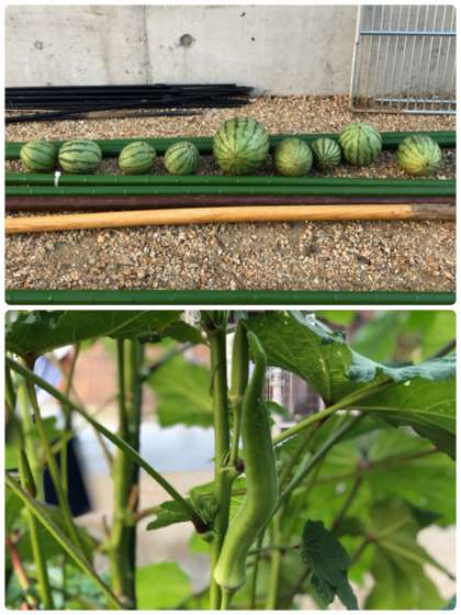 カラスに食い荒らされた後、再度小玉スイカを収穫しましたが、かなり小さいようです。