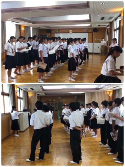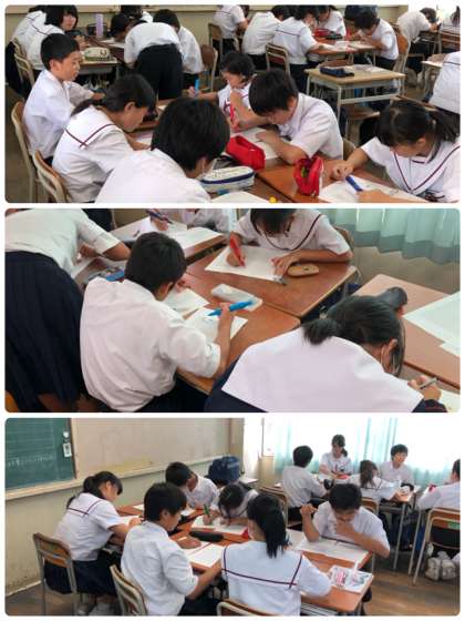 1年生は6時間目、合唱コンクールの練習とモザイクアートに取り組みました。