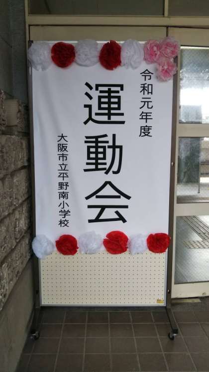 本日は平野南小学校の運動会でした。昨日の台風接近により前日準備のできない中、早朝より準備がなされ開催されました。