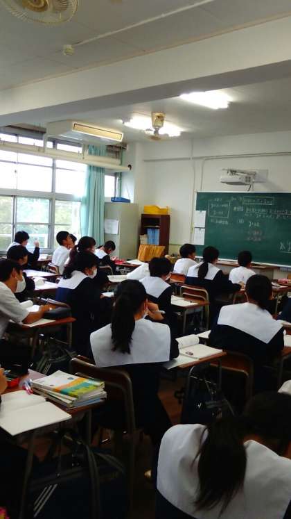 1年3組の英語の授業、1年4組の数学の授業です。