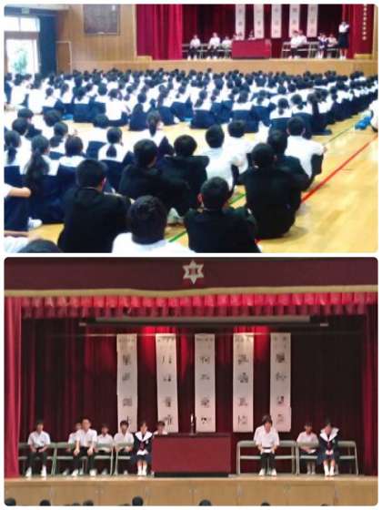 本日の6時間目、後期生徒会役員選挙立会演説会を行いました。