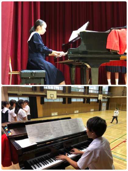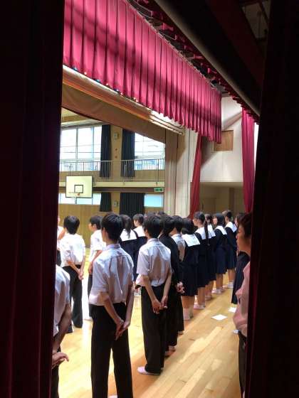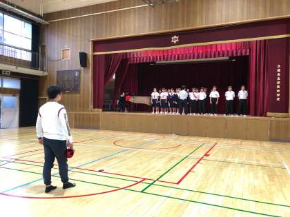 6時間目、1組の人たちが体育館練習をしているところでした。