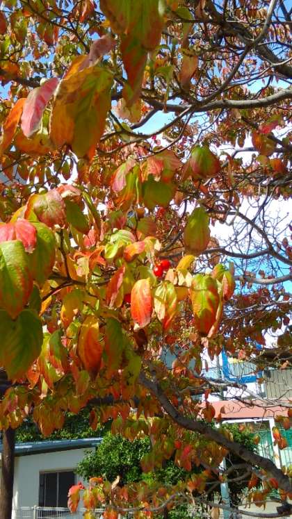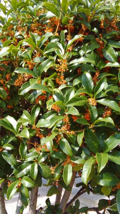 爽やかな晴天のもと、キンモクセイの香りがただよっています。葉っぱも色づき始めました。