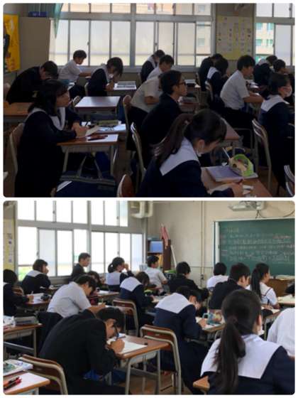 5時間目、3年1組の数学と3年3組の社会です。