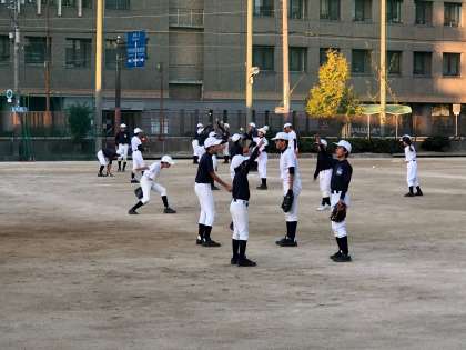 野球部はキャッチボールの後、ボール回しをしていました。