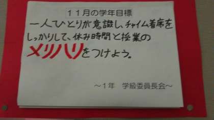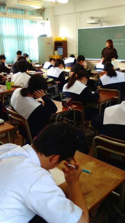 1年生の朝学習の時間です。数学の問題を解いています。