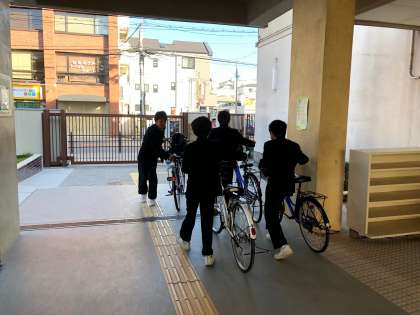 2年生は来週の職場体験に向けて、昨日と本日で各事業所に事前訪問をしています。遠方の事業所には自転車で訪問しています。気をつけて行ってほしいです。