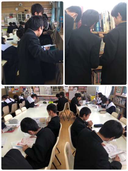 1組は図書室に移動し、色々な本を見ながら調べていきました。