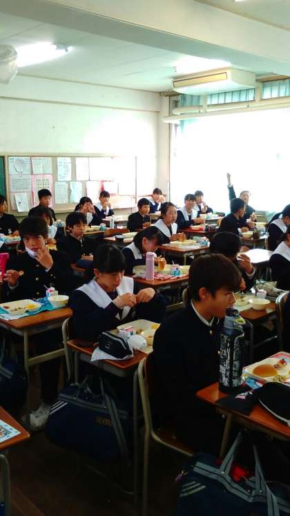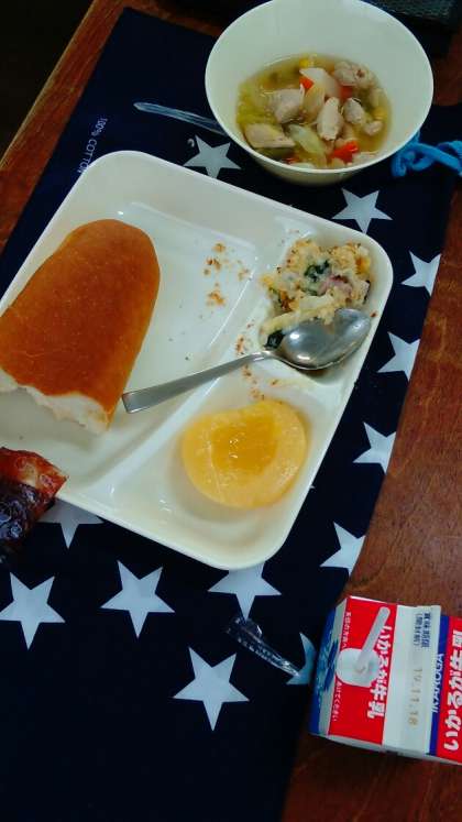 1年1組の給食の様子です。どこよりも早く準備ができています。