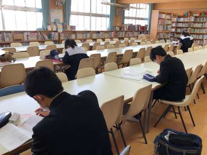 先週から始まった元気アップさんによる3年生の放課後学習会です。今週は進路懇談のため、4時間目終了後から実施しています。参加者は、それぞれの学習教材に黙々と取り組んでいました。