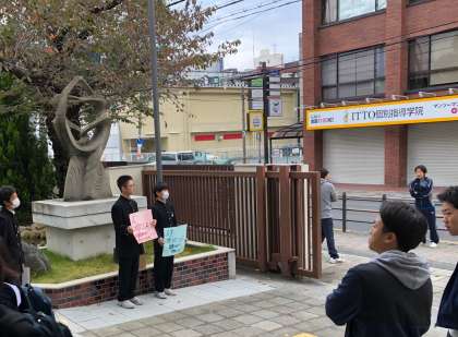 今朝は、職場体験のため2年生は直接事業所に向かう人もいます。