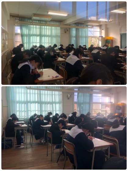 期末テスト最終日、1年生は数学、理科、音楽のテストです。