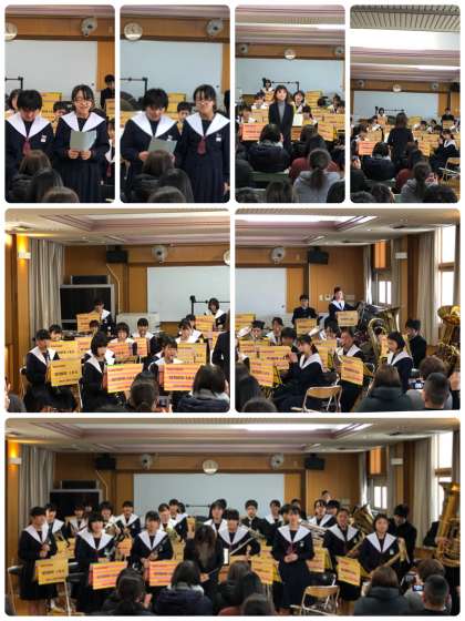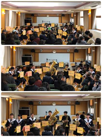 本日、吹奏楽部は学内演奏会でした。部員の保護者の方や引退した3年生、卒業した部員の人たちが見守る中、演奏会が行われました。