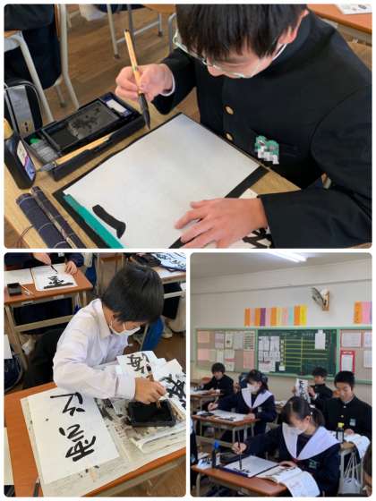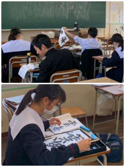 2年3組の書道の様子です。