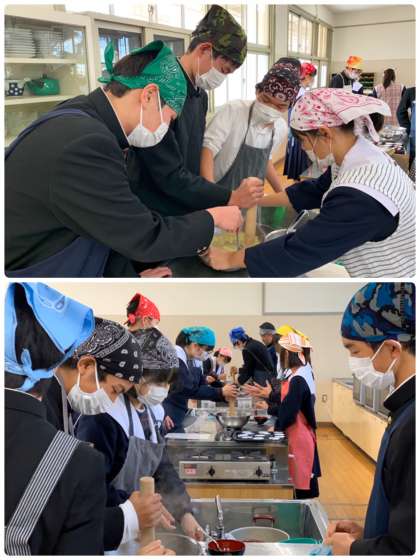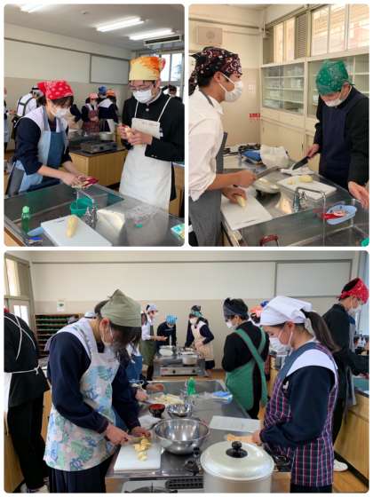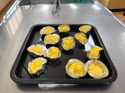 3年3組の調理実習の様子です。スイートポテトを作りました。
