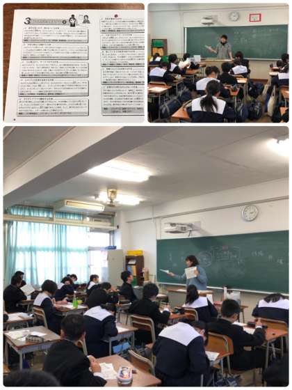 6時間目、1年生は一昨日のキャリア教育のアンケートの記入と先日選んだSPトランプの結果からどのような職業が向いているかを探っていきました。