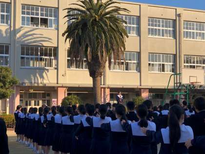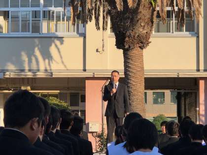 校長先生からは、「先週は各学年キャリア教育を行いました。1年生は高校の先生に来ていただき、「働くことと幸せ」、「自己を見つめて」ということでお話をいただき、その後SPトランプを使って、どんな職業に向いているかを探っていきました。2年生は地域の方や保護者の方を中心に学校へ来ていただき、「生き方学習」を行いました。3年生も昨年お話をいただいたと思いますが、16人の方のお話を各班2人ずつ聞かせてもらいました。それぞれのお話を聞き、色々な経験をされて今に至っていることを学べたことと思います。これからに役立ててください。