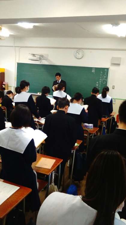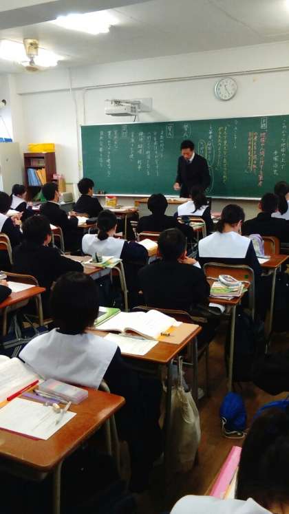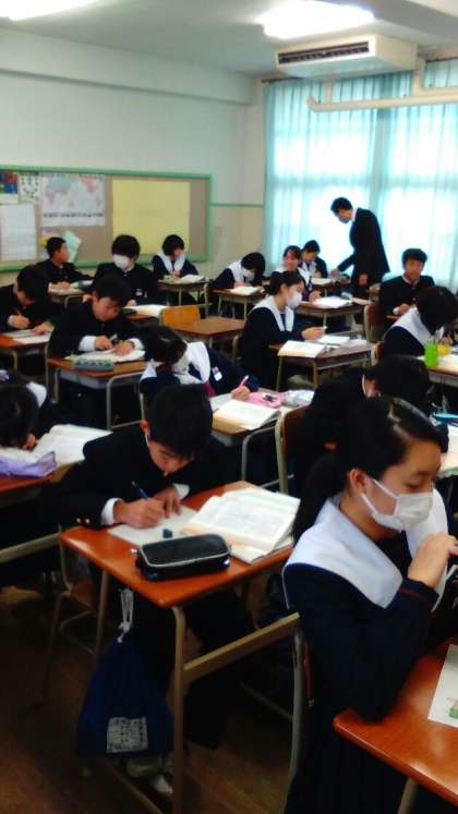 1年4組の国語の授業です。手塚治虫の文章を読み取り、自分の意見を作文しています。