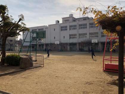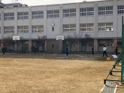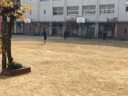 ?サッカー部が運動場を使用しているので、野球部は中庭で練習をしていました。