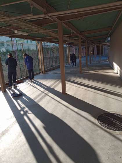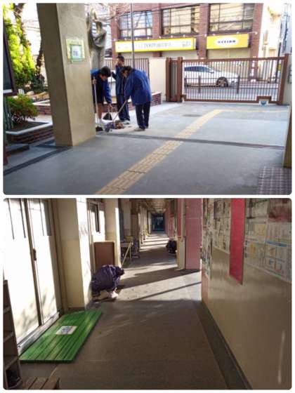 おはようございます。本日、学校では柔道部が大掃除をしています。一昨日の強風で、廊下には落ち葉がかなりたくさん散っていましたが、それらをきれいに掃除してくれました。