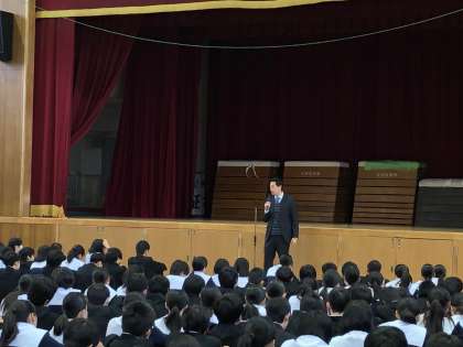 「3学期が始まりました。正月もありましたが、もう気を抜いている場合ではありません。1・2年生は次の学年に向けての0学期とも言いますが、廊下を走らないなどの指導を受けないように考えて行動してください。3年生は中学校生活のまとめの学期として、色々な人に感謝を表していく時期でもあります。卒業までに残された時間は短いですが、そういう姿も見せていってほしいです。」