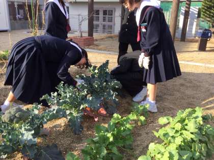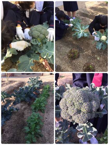 畑で今回は、ブロッコリーやカリフラワーを収獲しました。立派に成長しました。