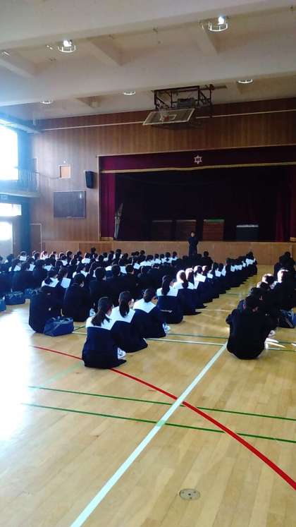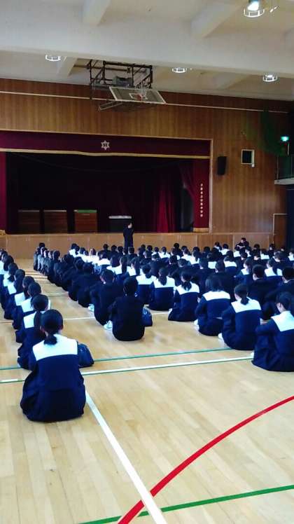 金曜日の朝、3年生の学年集会です。服装と心を整えて、頑張りましょう。
