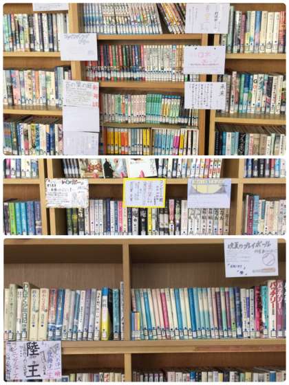 POPは本の種類に分けて、図書室内にも掲示してあります。
