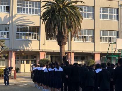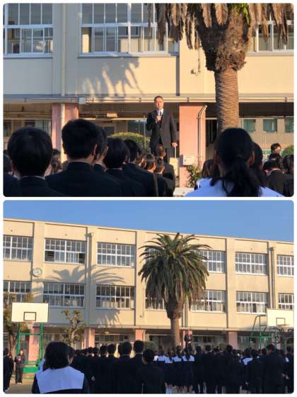 「今朝は2つの話をしたいと思います。1つめは、昨日成人の日でしたが、2年後には今の20歳から18歳に成人年齢が引き下げられます。そうなれば、18歳で色々な契約が自分でできるようにもなりますが、その分責任も重くなります。保護者の責任のもとということではなく、自分で責任を取らなければならないということです。成人式の行い方については、各自治体で検討されているところですが、18歳は皆さんにもすぐにやってきます。