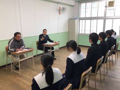 5、6時間目3年生は、校長先生と模擬面接を行いました。今日は3組と4組の人が班に分かれ、数名ずつ順番に面接を行いました。