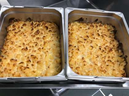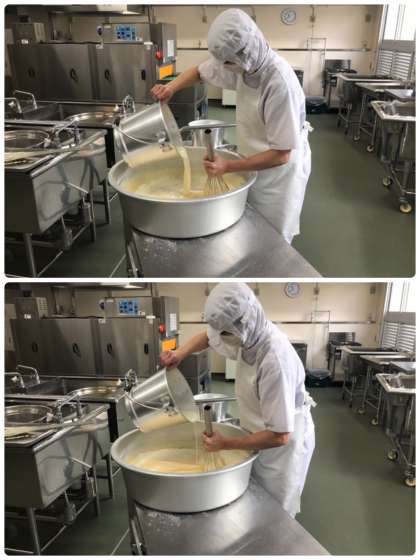 桃のクラフティの調理の様子です。