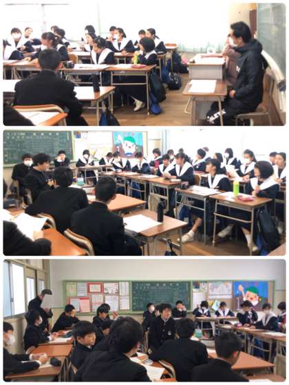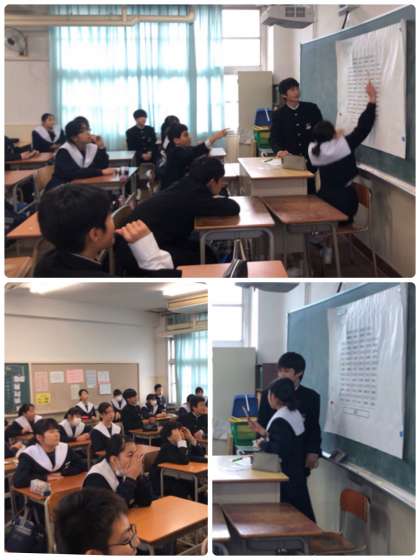 3組は新しい席を考えました。4組はみんなで討論会を行いました。